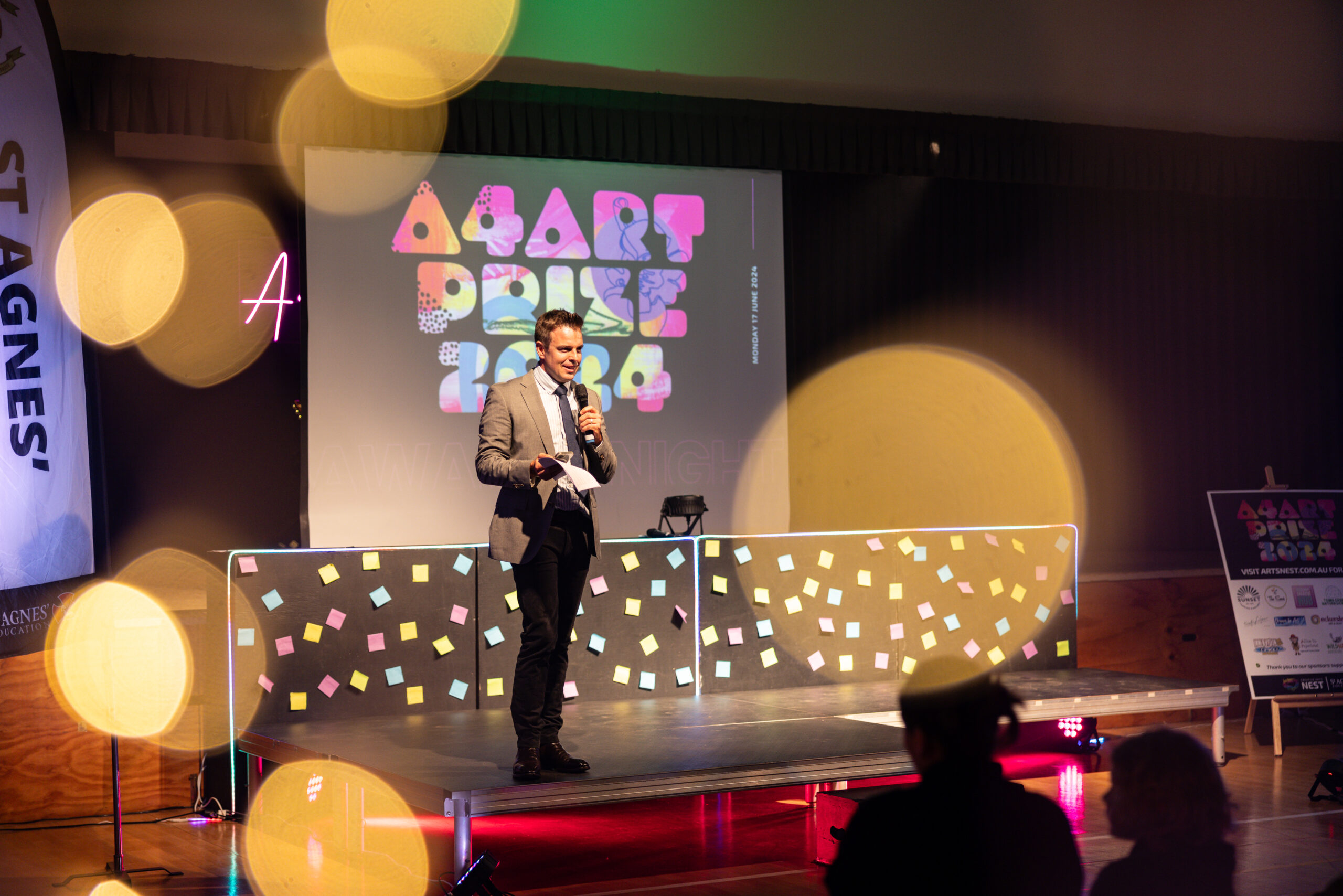 Cal Howard from Lens Head Photography capturing A4Art Prize Awards, 2023 & 2024